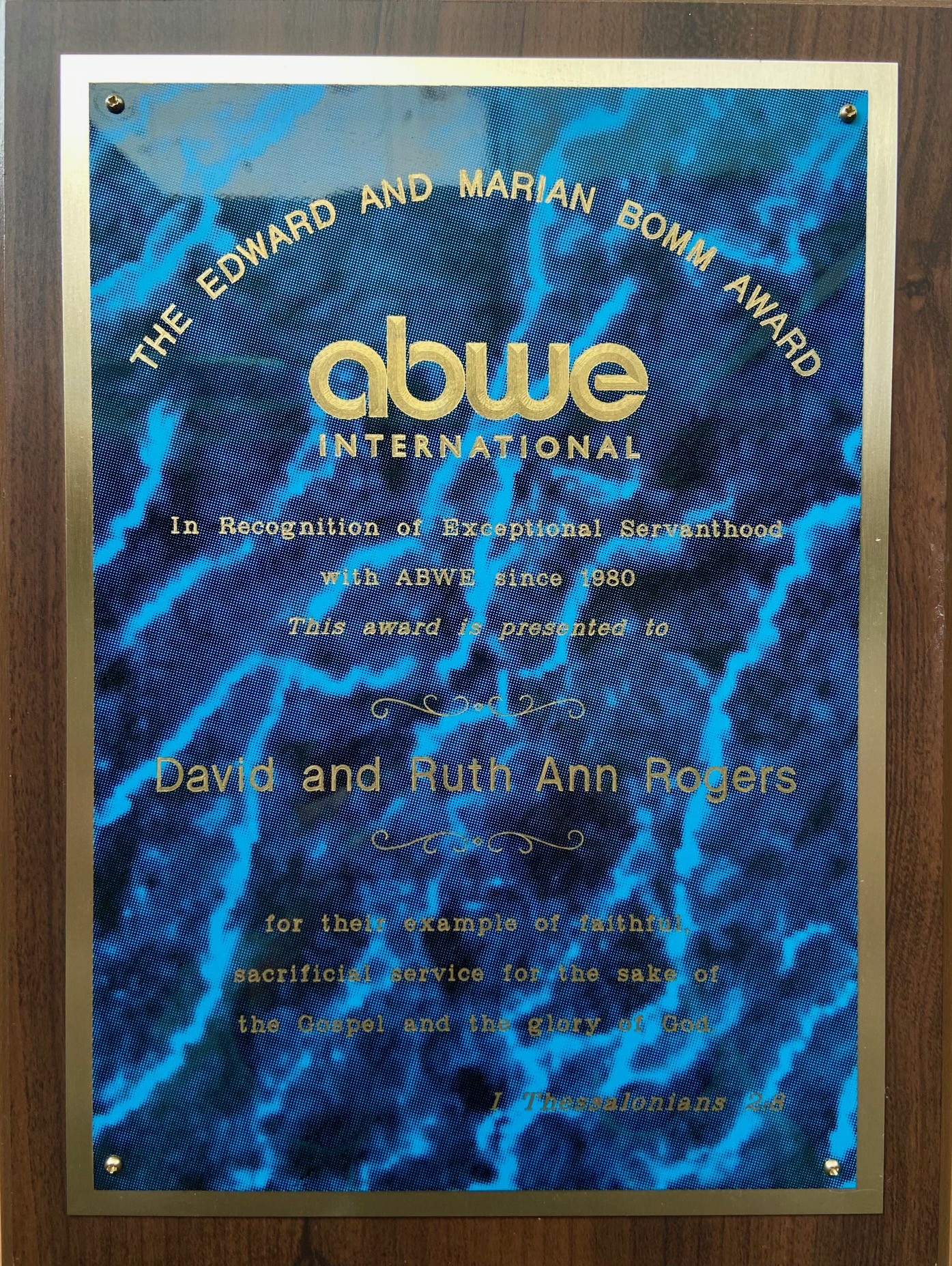 Service Award from ABWE Internationl